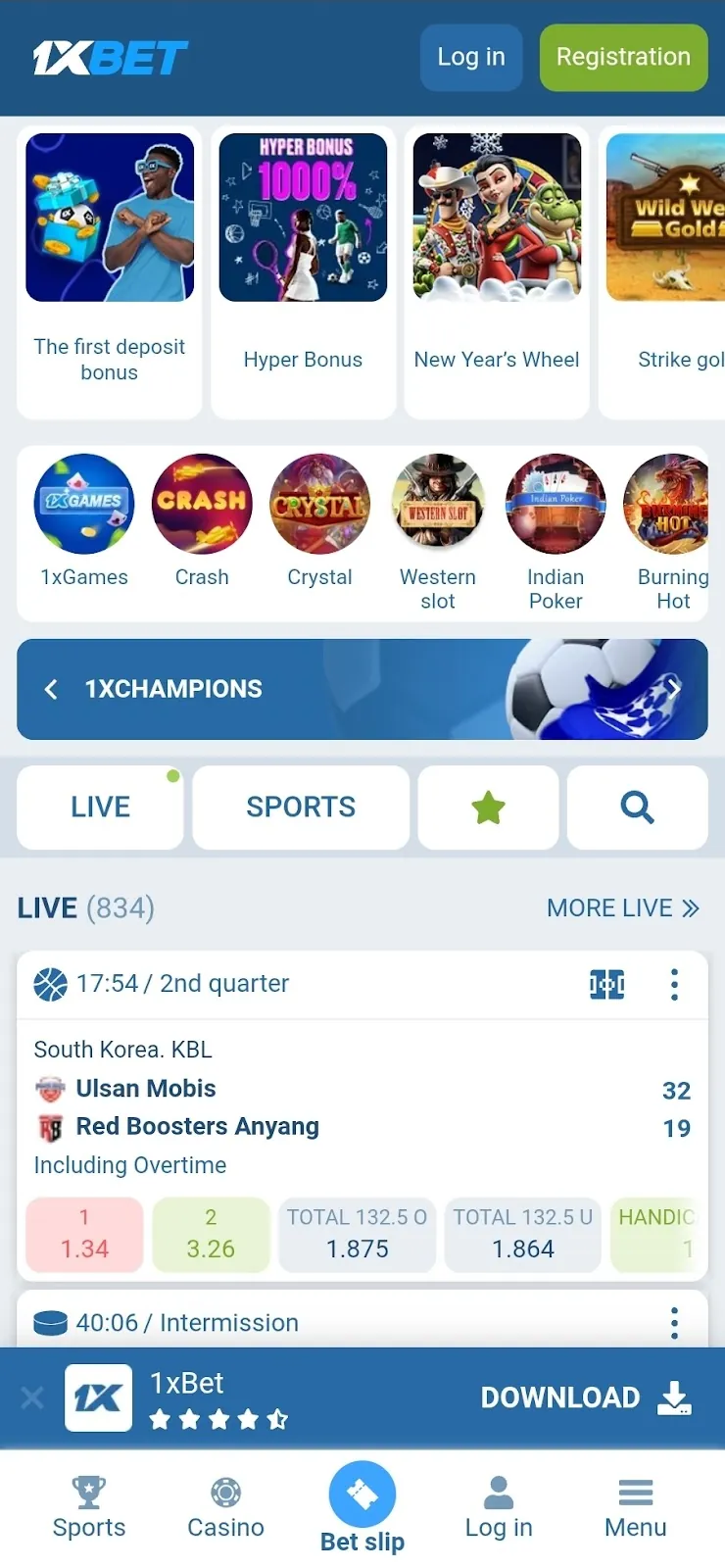 Visit the 1xBet website on your phone or laptop. Alternatively, launch the 1xBet app if you have it.